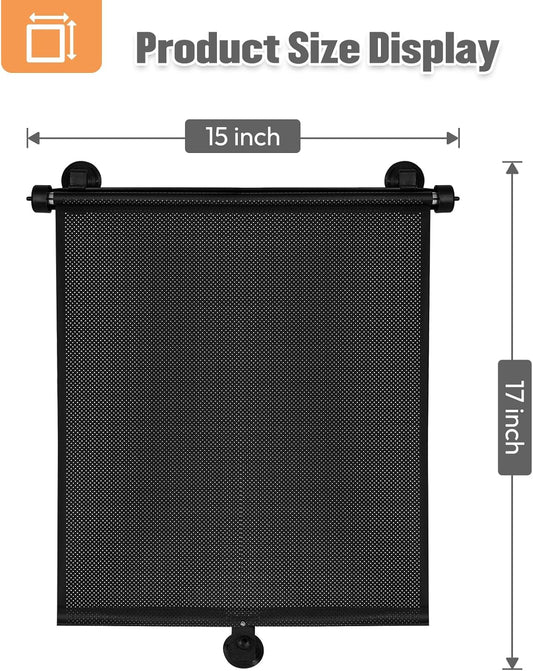 Karite 4 Pack Car Side Window Sun Shade - Retractable Car Roller Sunshadewith Reinforced Suction Cups, Drop Down UV Interior Sunshade, Stroller Window Sunshade (15" x 17")